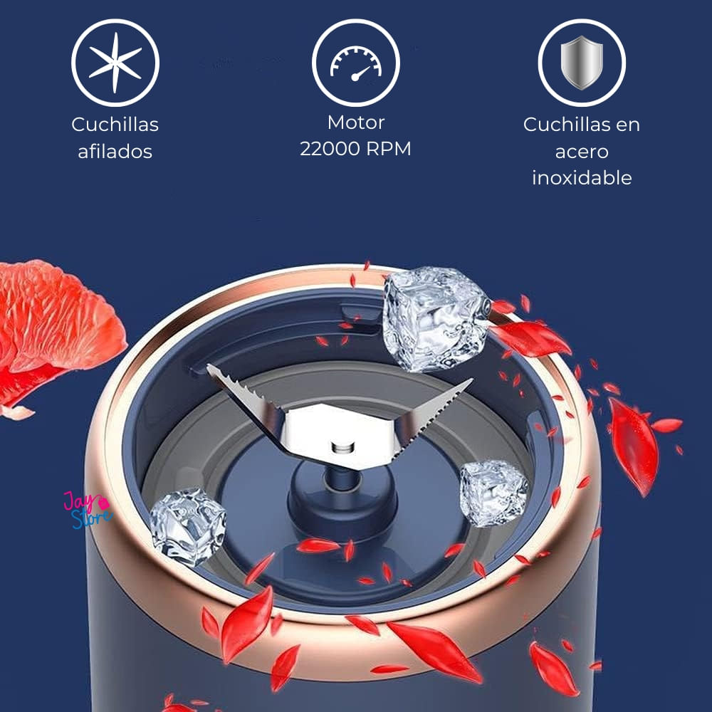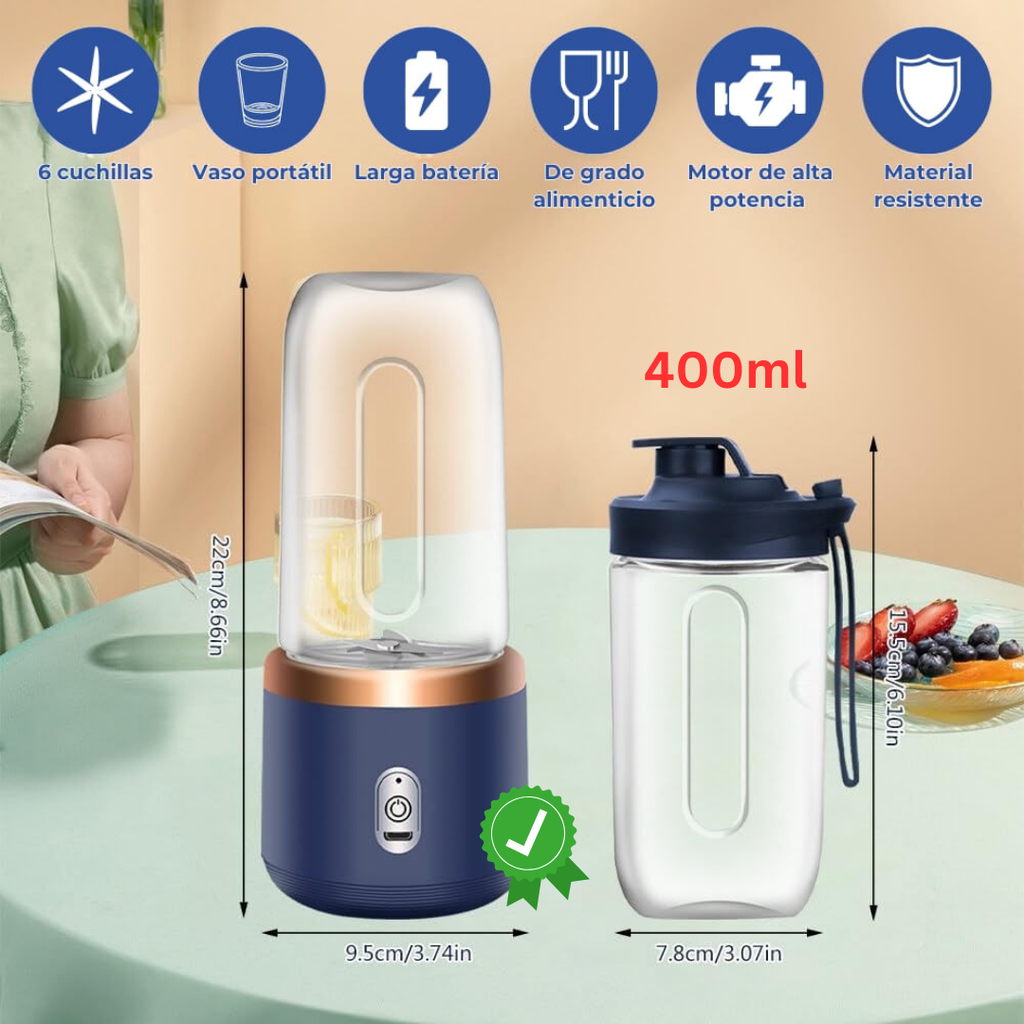 Lleva tu energía a donde quieras: Tu licuadora portátil recargable USB con 6 cuchillas, ahora también termo.